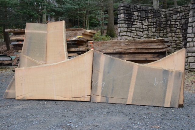 This Amazing White Oak tree was growing when William Penn was granted Pennsylvania from the King of England in 1681. It grew in the Saint David’s Area near Newtown Square in southeast PA. I was not lucky enough to get the log. It went to a community project. I did get six feet of Buttress and the huge crotch. It grew very slow and has sixteen growth rings per inch and perfect color. I quarter sawed the butt into 8/4 book matched planks that are 22″ to 42″ wide, and 5′ to 6′ long. I flitch cut the crotch into 12/4 slabs 7′ wide. These could be end matched, book matched for bar tops Table tops or a base for a huge tabletop. The 12/4 crotch slabs are still on sticks and will be dried next year. Get creative and you can own a piece of history.