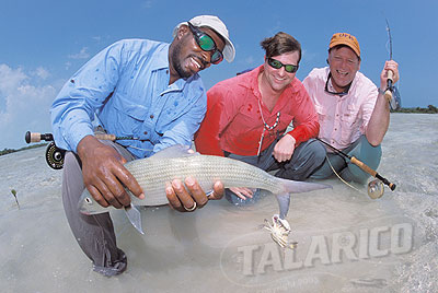 Skeebo, Tim Brune & Barry Kanavy with a Bonefish & crab, Bahamas.