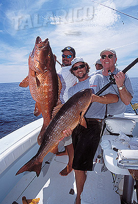 Happy anglers with big Cubera Snapper and Mullet Snapper onboard, Costa Rica.