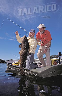 Guide Mike O'Brian & Jim Finn lands a 25lb. Carp,
