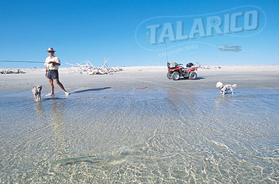 Fighting a Ladyfish on the beach, Baja.