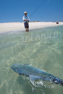 Fighting a big Jack Crevalle from the beach, Baja.
