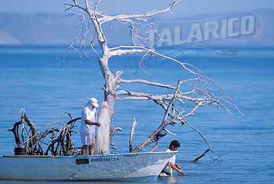 Fisherman casting a net for bait, Baja.