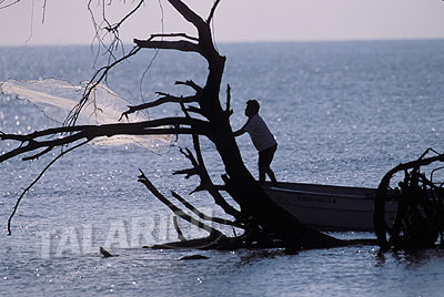 Fisherman casting a net for bait, Baja.