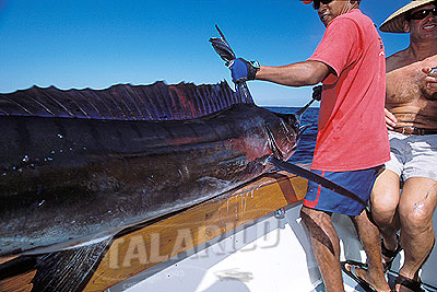 Landing a Stripped Marlin for a photo, Baja.