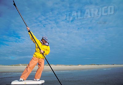 Barry Kanavy poling off a beach at Cape Lookout, NC