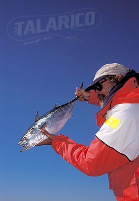 Captain Lee Parsons releasing a false Albacore, Harkers Island