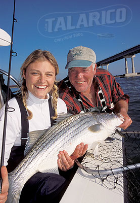 Jo Mason & Bruce Foster land a Striper, Chesapeake Bay, VA