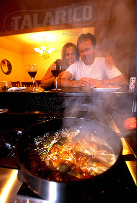 Anna & George watching softshells being cooked, NC