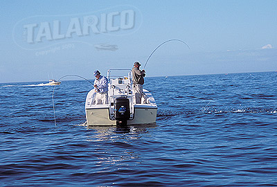 "Double Header" 2 anglers fishing for Albacore Tuna on a boat at Harkers Island, North Carolina.