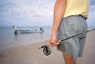 Saltwater flyfishing boat at Cape Lookout, North Carolina.