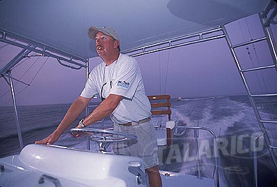 Captain Jim Carey on the Sea Lion 2 at dawn, 2 strobes, Oregon Inlet, NC
