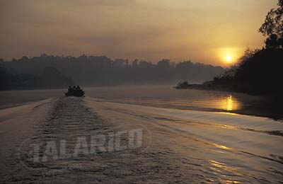 Going up the Bendsbach River at Sunrise, New Guinea.