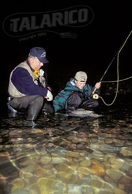 Coop Gilkes helps young Julian Pepper with his first keeper Striper 36 inches on the fly