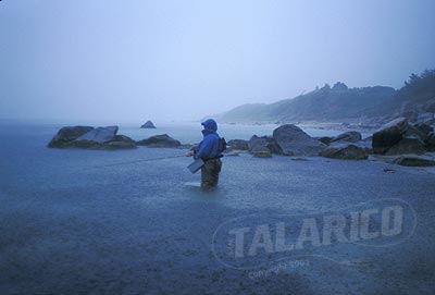 Fly fishing in a storm along a beach, Menemsha, Martha's Vineyard