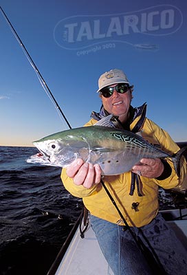 Guide Barry Kanavy lands a False Albacore on fly, Montauk Point