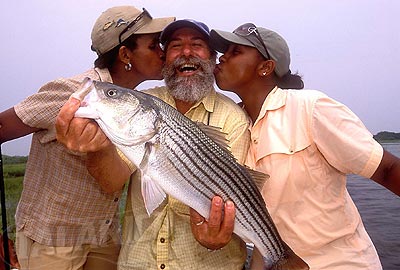 Lyra, Sam Talarico and Shannin with Striper, Great South Bay, NY