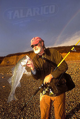 Jimmy Finn landed Striped Bass under rainbow, Montauk, NY