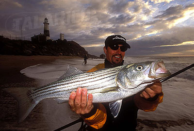 Surf fisherman landed Striped Bass at Turtle Cove, Montauk, NY