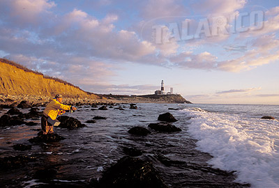 Surfishing at first light, sunrise at Montauk Point, Long Island, NY.