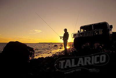 Surfishing at sunset, Montauk Point, Long Island, New York.