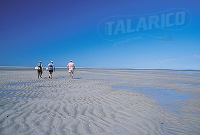 Flyfishing anglers fishing for Striped Bass walking the flats, Martha's Vineyard, Massachusettes.