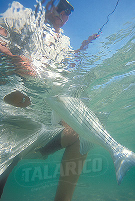 Underwater image landing a Striper, Monomy Island, Cape Cod, MA