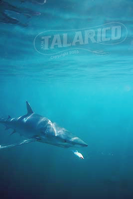 Underwater photo of Blue Shark chasing a streamer fly, Massachusettes Bay.