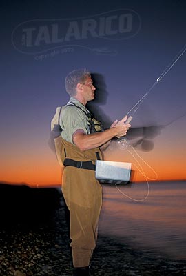 Matt Glerum casting at sunset, 3 stobes, Martha's Vineyard, MA