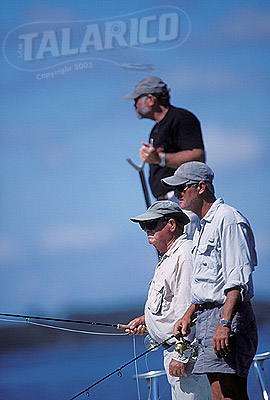 Saltwater flyfishing, anglers searching for Tarpon, Flip Pallot, Lefty Kreh, and Bill Bishop, Florida.