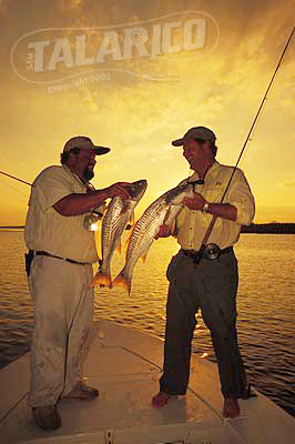 Saltwater flyfishing, anglers caught 2 Redfish at sunset, Charleston, South Carolina.