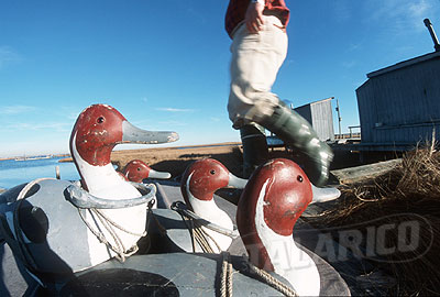 Capt. Barry Kanavy getting decoys ready for duck hunt, NY.