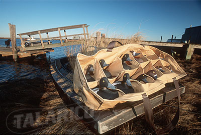 Working decoys - called Stool, carved by Capt. Jack Combs and boat in front of bayhouse dock, NY.