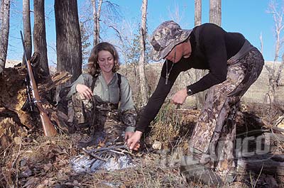 Starting a camp fire on hunt