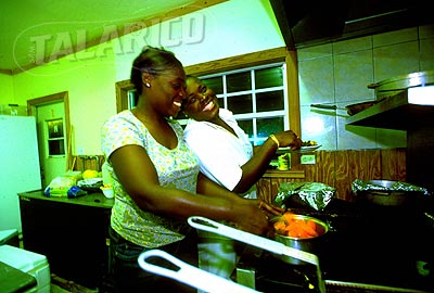 Munroe sisters cooking in the kitchen, Andros Island, Bahamas