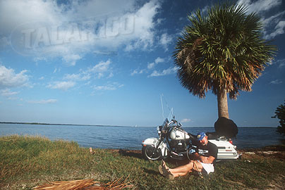 Flip Pallot napping while fishing from his Harley, Biketoberfest, FL