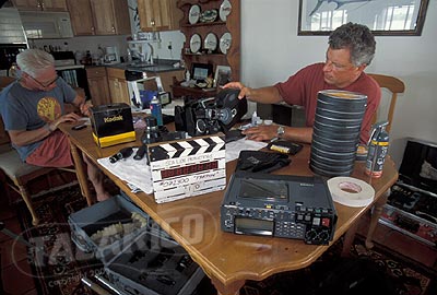 Film crew, Bob Hanna & Rick Paterson packing gear after a Walkers Cay Cronical shoot, FL