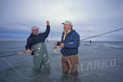 Celebrating landing an Albacore from shore, Harkers Island, NC